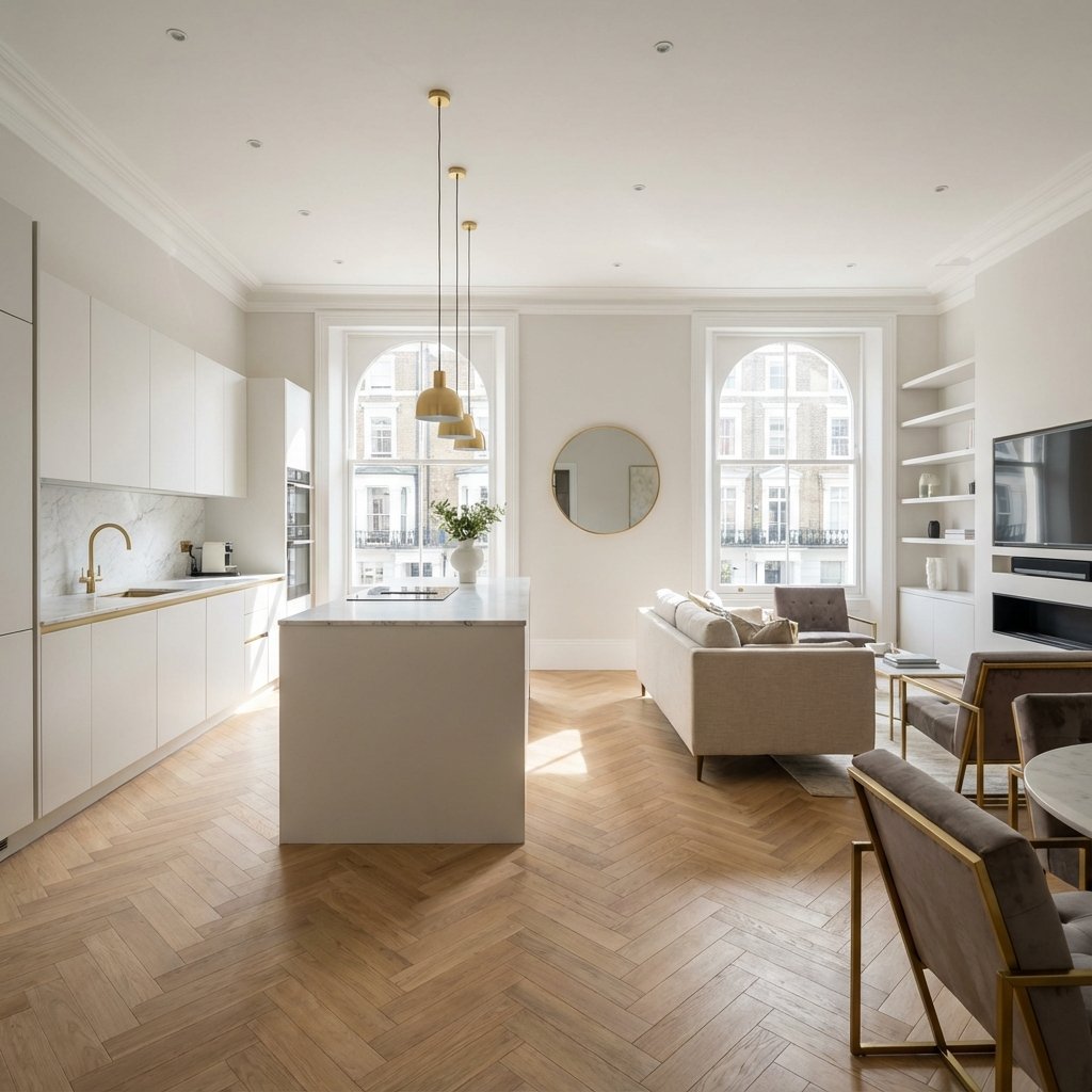 It typically includes stripping out old fittings, rewiring, new plumbing/heating, plastering, painting, new flooring, and installing new kitchens and bathrooms. Structural changes (knocking down walls) are also common.